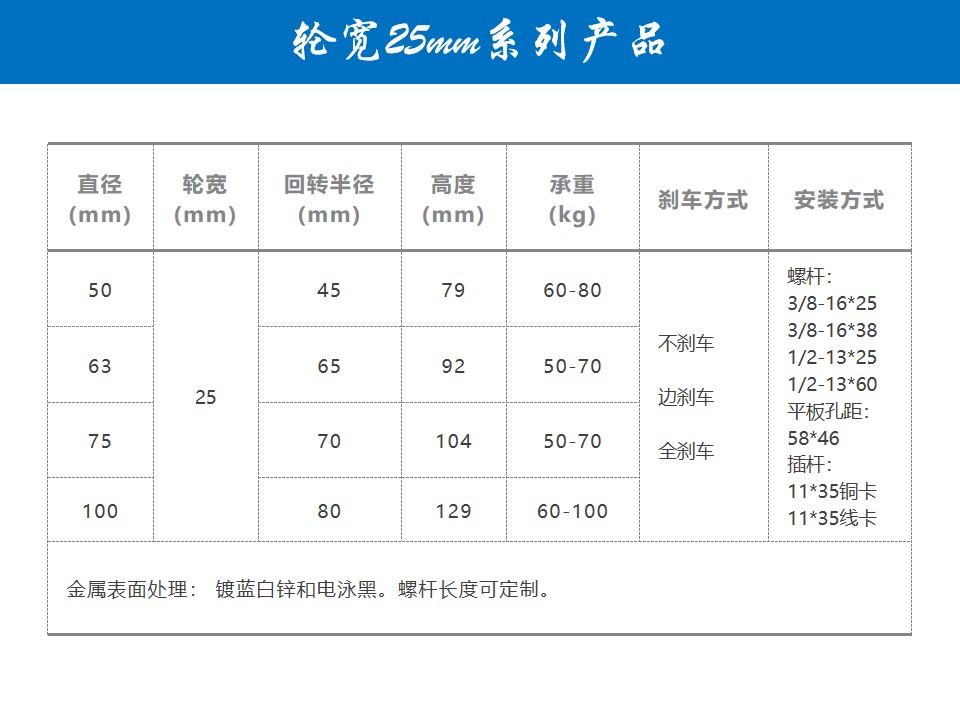 > 2寸 2.5寸 3寸 4寸 5寸 大型行业轮展现出架万向轮